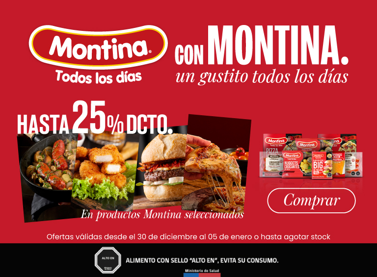 Hamburguesa BIG de Vacuno 150 gr Montina ($5.867 kg)Precio especial $880 Precio referencial $1.100Precio x kg: $5.867