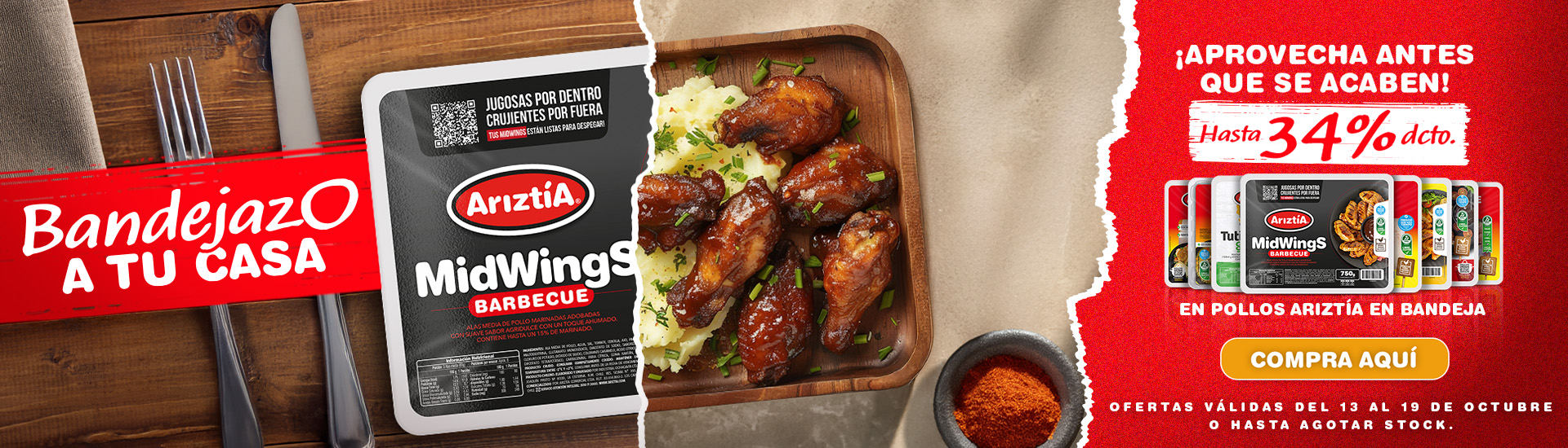 DCTOMidwings Barbecue 750 gr Ariztía ($4.120 kg)Precio especial $3.090 Precio referencial $4.690Precio x kg: $4.120