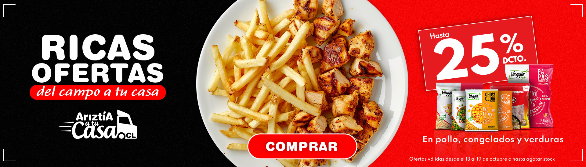 DCTOAlitas de Pollo Sureñas 750 gr Ariztía ($4.867 kg)Precio especial $3.650 Precio referencial $4.690Precio x kg: $4.867